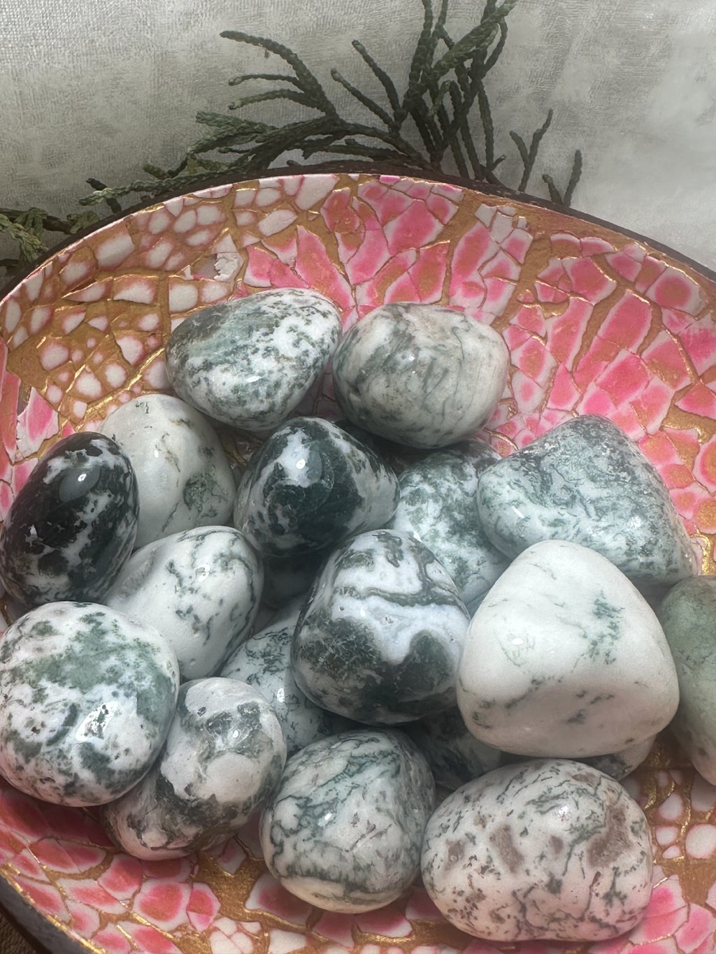 Achát stromový (stromečkový) je kamenem vnitřního klidu, hlubokého propojení s přírodou a stabilizace. Podporuje emocionální rovnováhu, učí sebekontrole, odstraňuje zlost a zklidňuje napětí.