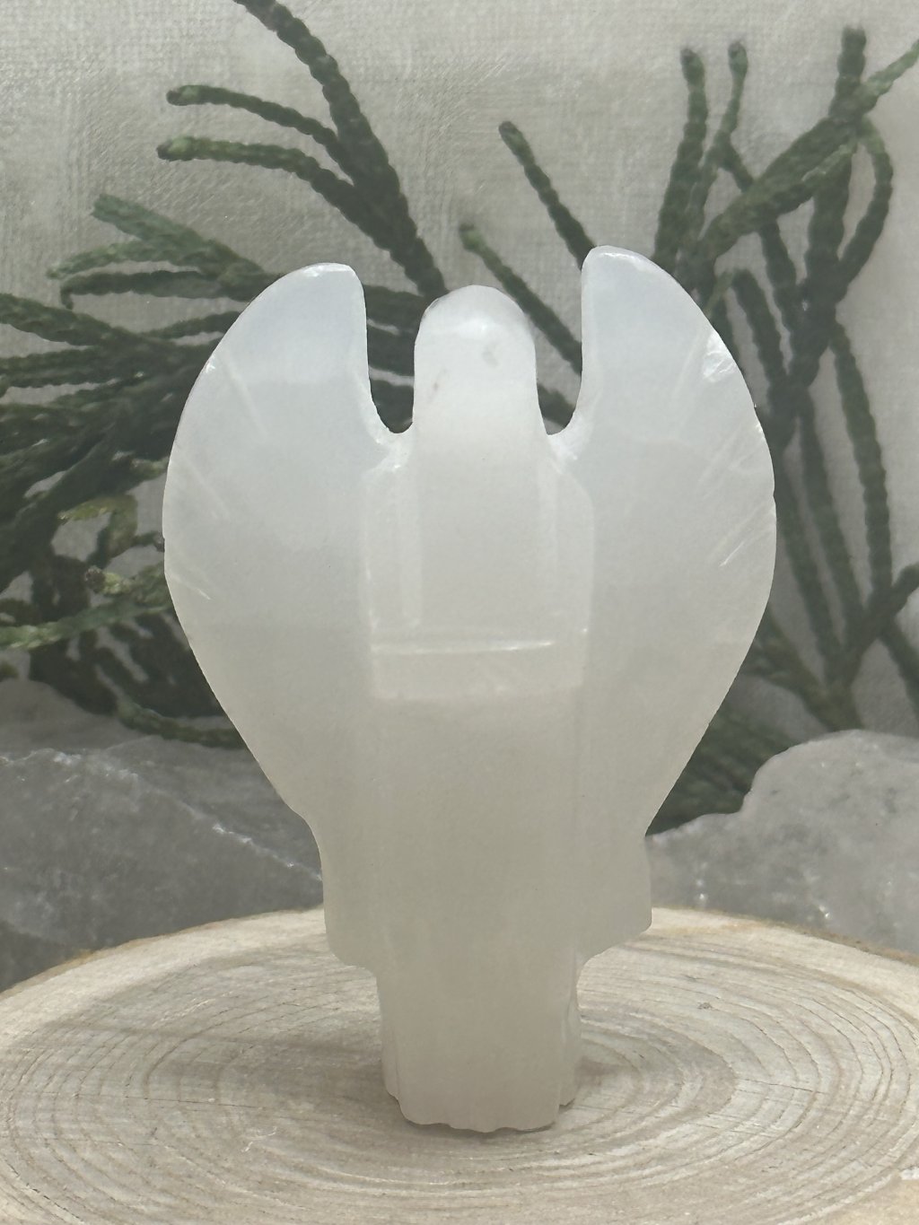 Anděl vybroušený z pakistánského "onyxu" - aragonitu v bílé barvě. Výška 5,5 cm.