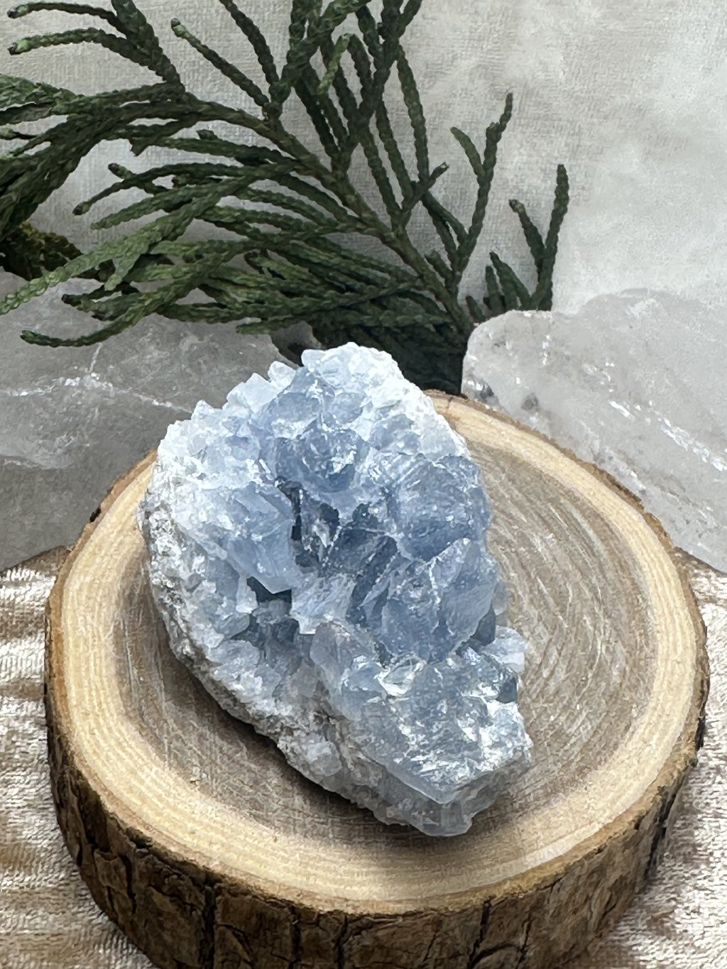 Celestýn/celestit/celestin je nádherný nebesky modrý krystal, nabitý vysokými vibracemi a moudrostí a informacemi pro nový "vodnářský" věk. Celestýn napomáhá svému majiteli na jeho duchovní cestě, usnadňuje "probuzení" duše a napojení na nebeské sféry. Podporuje hluboký vnitřní klid a mír, pomáhá zklidnit emoce, současně projasňuje mysl a ukazuje cestu k harmonickému a naplněnému životu, který je v souladu se záměrem duše. Díky své ohromné, ale přitom velmi jemné a laskavé síle dal celestýn jméno i našem E-shopu.