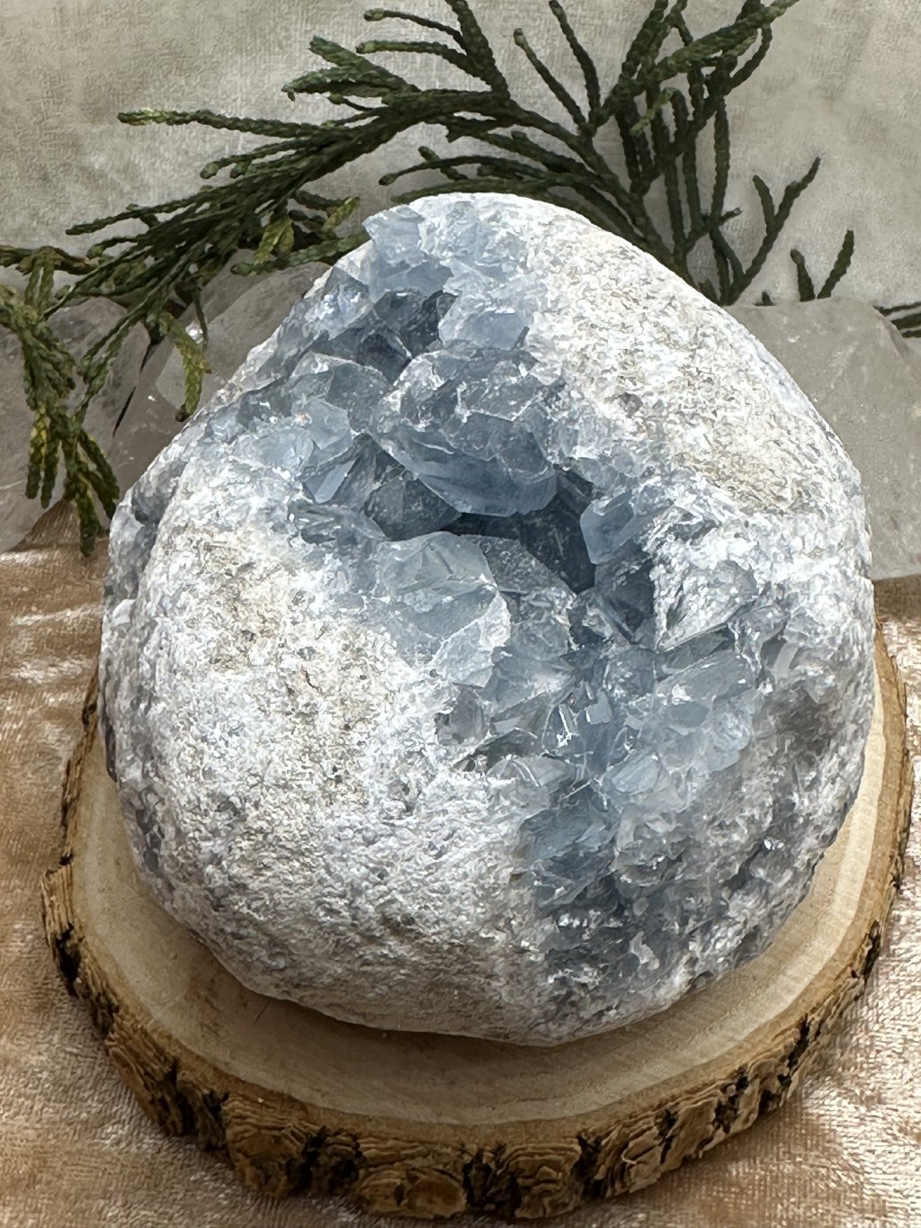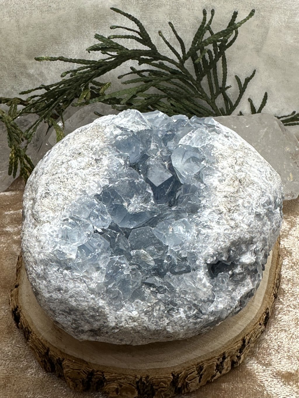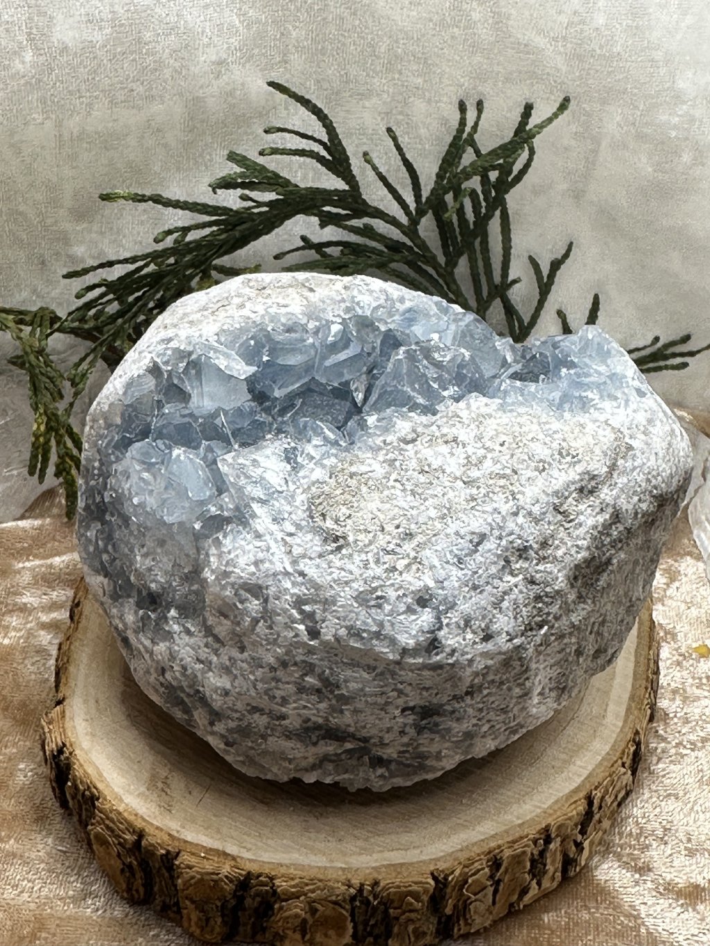 Celestýn/celestit/celestin je nádherný nebesky modrý krystal, nabitý vysokými vibracemi a moudrostí a informacemi pro nový "vodnářský" věk. Celestýn napomáhá svému majiteli na jeho duchovní cestě, usnadňuje "probuzení" duše a napojení na nebeské sféry. Podporuje hluboký vnitřní klid a mír, pomáhá zklidnit emoce, současně projasňuje mysl a ukazuje cestu k harmonickému a naplněnému životu, který je v souladu se záměrem duše. Díky své ohromné, ale přitom velmi jemné a laskavé síle dal celestýn jméno i našem E-shopu.