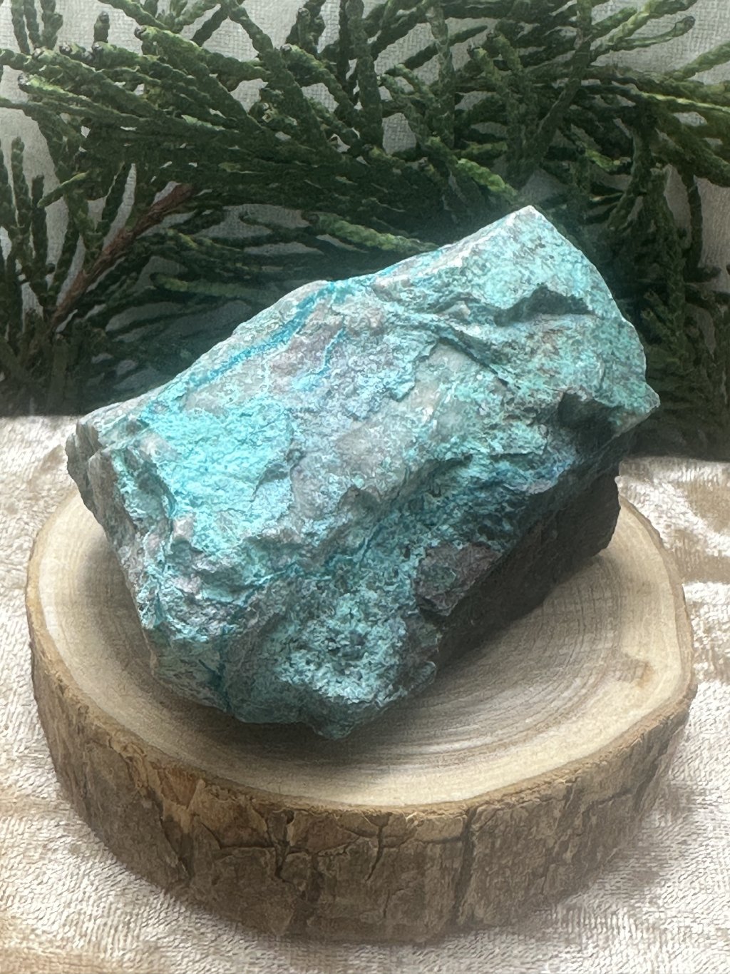 Luxusní vzorek přírodního chryzokolu z Peru. Rozměry: 7 x 5 x 4 cm, 196 gramů