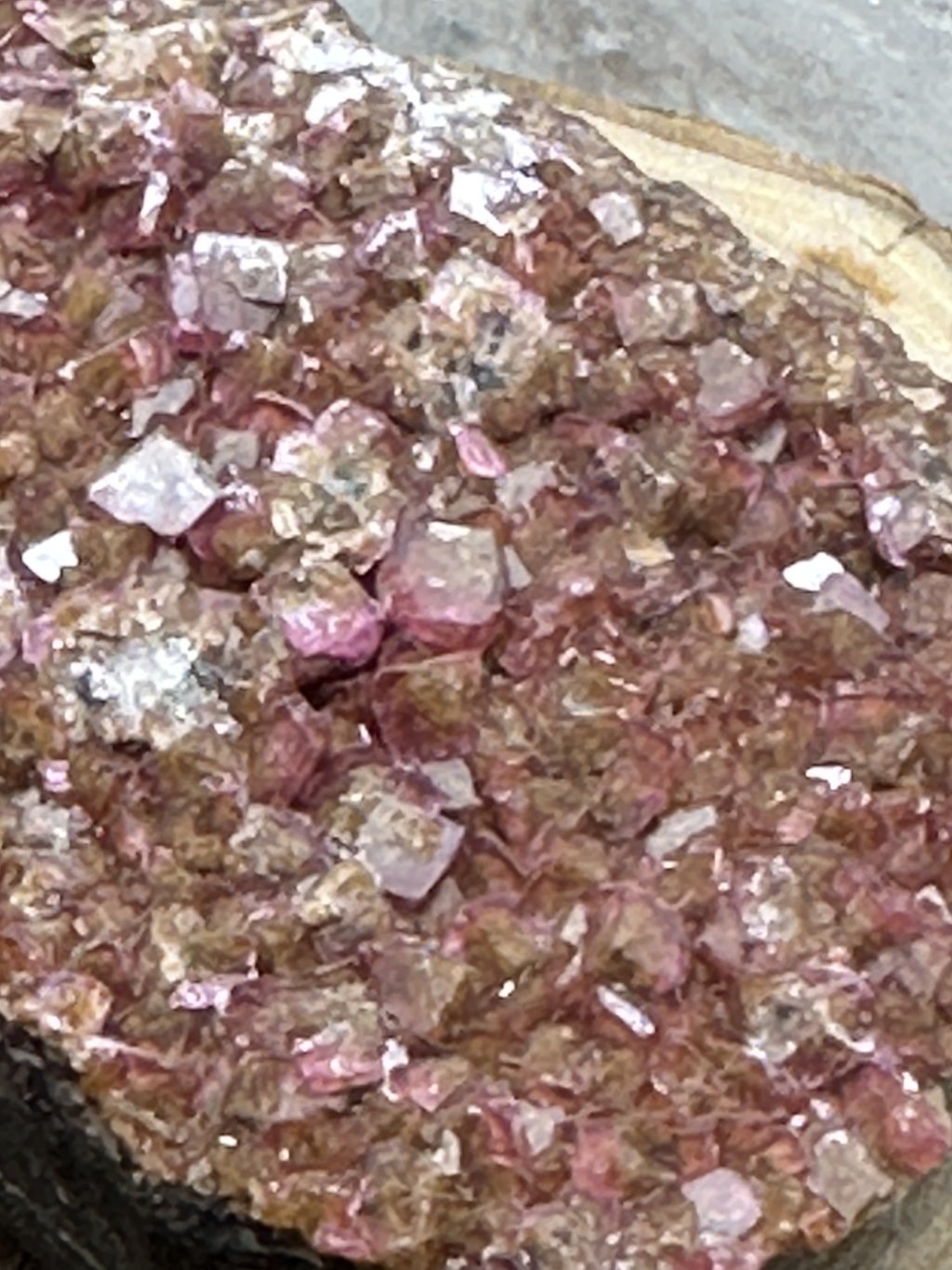 Kobaltokalcit (salrose) na hornině z naleziště Kakanda v Kongu. Rozměry kamene: 6,5 x 4 x 2 cm, 142 gramů