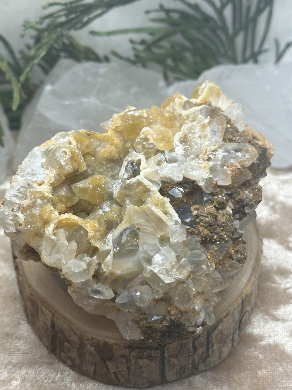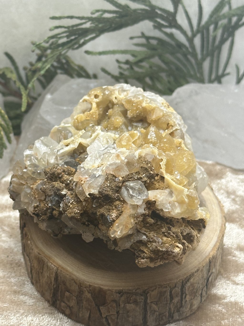 Drúza luxusního křišťálu s limonitem - "Zlatý léčitel" - ze Zambie. Rozměry: 8 x 7 x 3 cm, 187 gramů