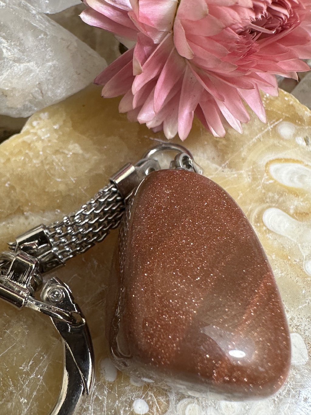 Přívěsek na klíče s tromlovaným kamenem - sluneční avanturín (syntetický)