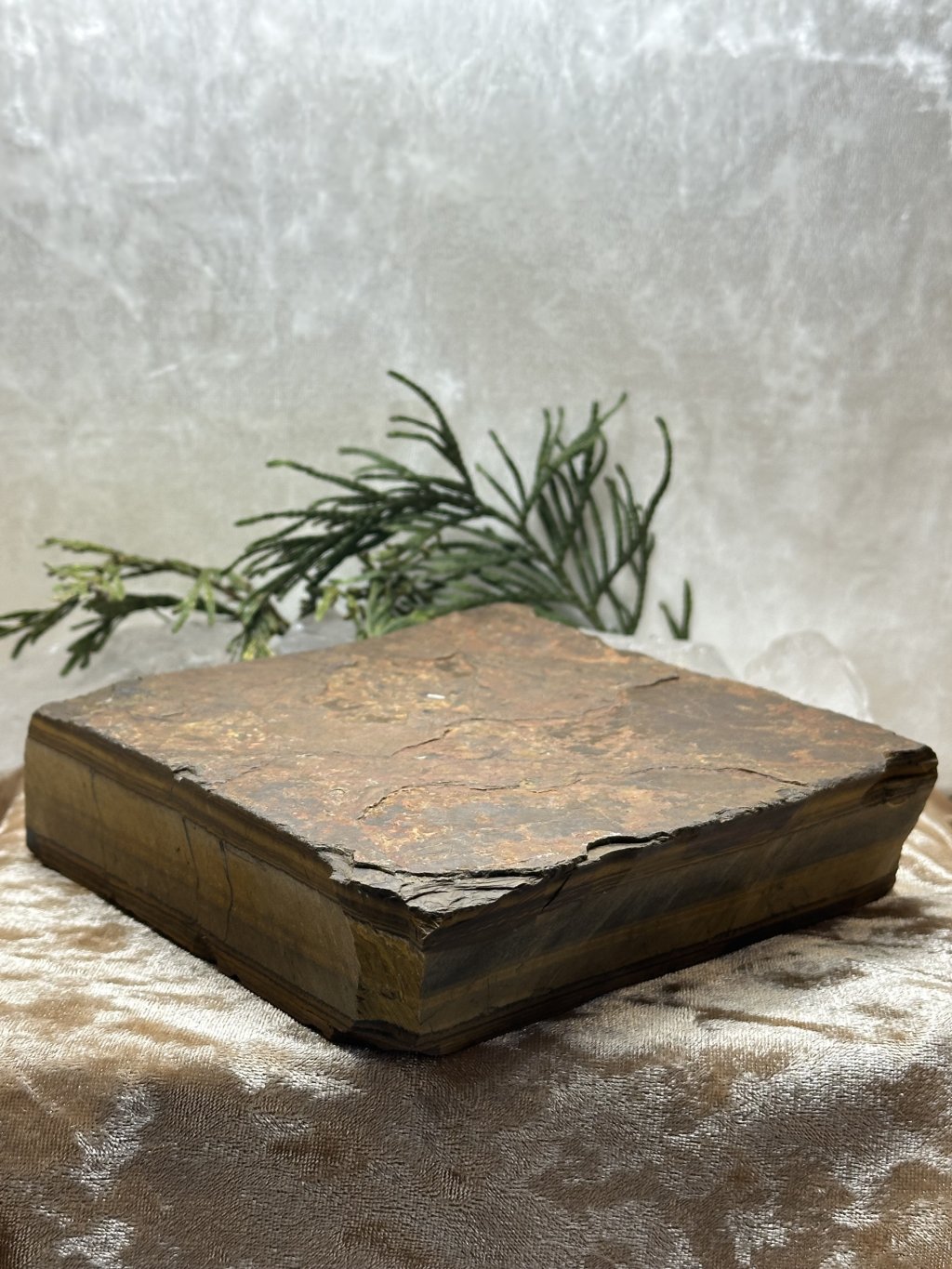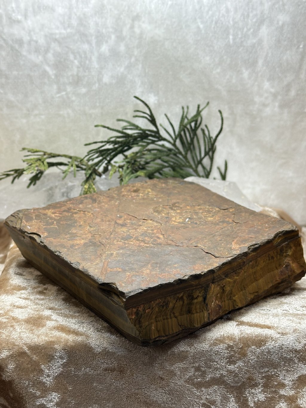 Unikátní kus! Tygří oko z naleziště Prieska (provincie Northern Cape, Jihoafrická republika). Rozměry: 13 x 13 x 3,3 cm, váha: 1,58 kg.
