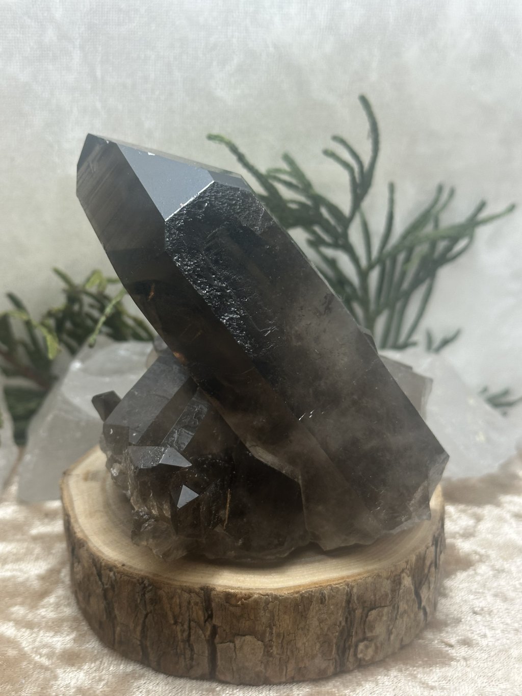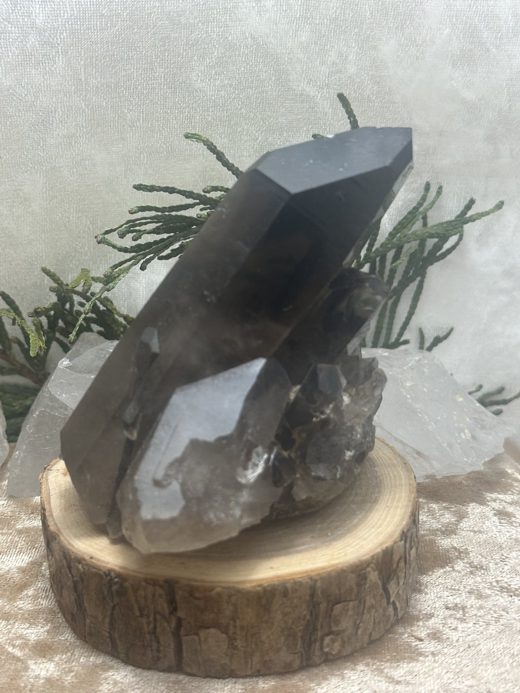 Drúza luxusní záhnědy s velkým krystalem z Brazílie. Rozměry: krystal 10 x 3 cm, "základna" 6 x 5 cm, 272 gramů